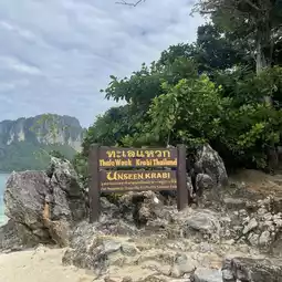We have arrived at the Sea of Separated Sea, the most Unseen tourist attraction in Thailand in Krabi Province. The highlight here is that there are 3 islands close to each other: Koh Kai, Koh Mor, and Koh Tap. There is a sandbar in the middle. During low tide, you can clearly see the sandbar, separating it into three parts and connecting it to all 3 islands. #KrabiSea #Krabi #SeaofSeparatedSea
