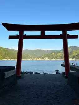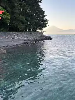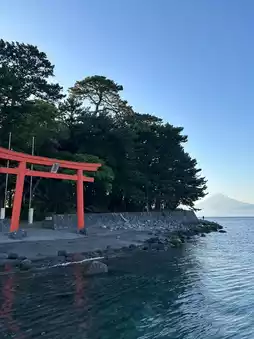 The shrine's torii gate is built close to the beach, and on some days you can take a miraculous three-shot of the sea, torii gate, and Mt. Fuji, as shown in the photo! ️