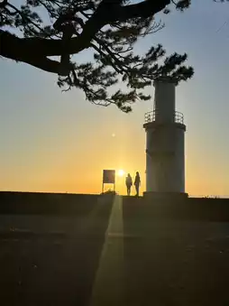First, follow the road and you will see a lighthouse, so walk to that landmark