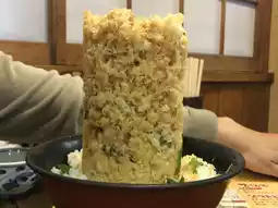 → Be amazed by the massive kakiage, approximately 20 cm in diameter 🍤.