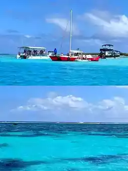 The gradient blue-green water and coral gardens form an "underwater aquarium" where you can snorkel and dance with sharks and rays, and take photos of the pink beach and volcanic reflections at low tide.