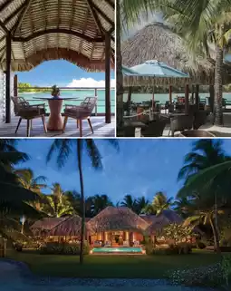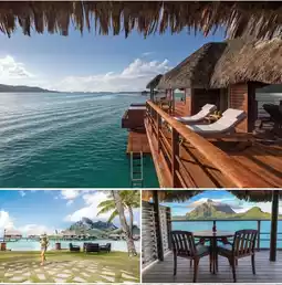 Perched on a crystal-clear lagoon, the overwater bungalows are poetically arranged against the backdrop of majestic volcanic islands 🌋 Wake up to waters so blue they look like spilled paint, snorkel with tropical fish, and breathe in the liberating ocean breeze~