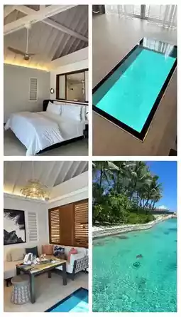 MIKIMOTO pearl-themed overwater bungalows! Each room has a glass floor.