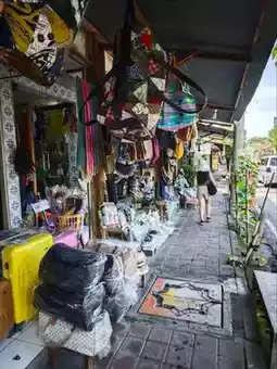 Interspersed among these shops are quaint cafes where you can savor local delicacies or simply relax with a refreshing drink. The street also features temples that add a touch of spirituality and cultural richness to the atmosphere, inviting visitors to explore Bali's deep-rooted traditions.