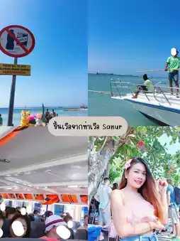 ☀️ Day 1 🔅 Take a car from Ubud. We bought a boat ticket + driver to the pier from 👉🏻 This page Beji Tour Thai price ~ 1200 (round-trip boat ticket) 🚢 We took a boat from Sanur Pier. It took about 40 minutes. When we arrived, there were many guides waiting. It felt like a taxi. 🚖 We chose the person and got a very good person.