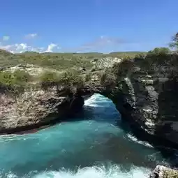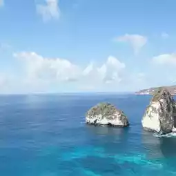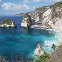 The island is incredibly beautiful, with sunlight reflecting off the bright blue sea. We took a one-day trip tour from Sanur Pier, departing around 7 AM. We visited five key locations, perfect for check-ins and photo ops, and returned around 3 PM. The travel time from the pier to the island is about 1 hour, and traveling between the various locations (1 to 2 to 3, etc.) takes a considerable amount of time (30-60 minutes). The roads are quite rough as they are under construction. Despite the hot weather, it is worth visiting Bali at least once.
