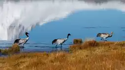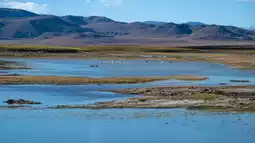2023-10-05 Had a Tibetan breakfast and then went to Dangre Yongcuo. The weather was very good, the sun was shining, and the temperature was a bit low, probably around zero degrees. First passed Dangre Yongcuo and then arrived at Dangqiong Cuo. Dangqiong Cuo is super beautiful and there are rare black-necked cranes.