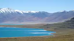 In the afternoon, we arrived at Dangre Yongcuo. Dangre Yongcuo is the deepest lake in Tibet. It seems to be embraced by half of the snow mountain. We walked along the 302 provincial road and passed several lakes such as Nanmu Cuo. In fact, all of them are along the Ali middle line. Around 7:30 we arrived at Coqen County. We looked for a camping spot along the way, but we couldn't find one. It was already very dark, so we slept in the car for the night.