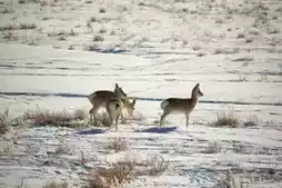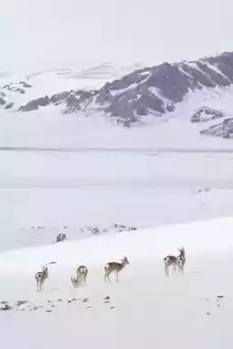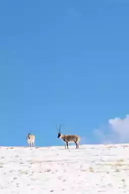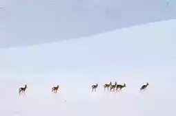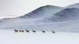 The Tibetan antelopes are leaping in the snow, and the ground beneath their hooves is responding to their rhythm. The hair flutters in the wind, like clouds freely floating in the blue sky.