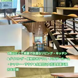 (The first floor is spacious, clean, and comfortable, with a living room, kitchen & dining room, covered terrace, powder room, shower, sauna & cold bath, and an open-air bath at Oarai Onsen. The second floor has two bedroom beds, a Japanese-style room, and a balcony (accommodates up to 6 people). ) A beautiful 90m2 two-storey stylish villa)