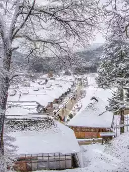 The Ginzan River flows gently through the center, adding to the town’s tranquil atmosphere. In winter, the snow-covered buildings and softly glowing lanterns create a fairy-tale-like setting that feels straight out of a storybook.