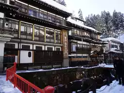Located about 3 to 4 hours away from Tokyo, Japan, Ginzan Onsen is covered in snow in winter.