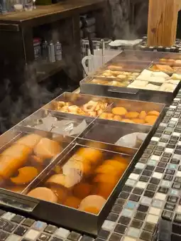 Daikon radish, konnyaku, itokonnyaku noodles, shumai, chikuwa, satsumaage, hanpen, egg, fried tofu, and a limited amount of octopus legs