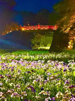 ~My impressions after actually going there📝~This was my first time seeing the light hydrangea and iris garden, but it was a beautiful sight that made me feel like I was in early summer🥺The iris garden spread out under the vermilion color and the hydrangea illumination is a spectacular sight! You can enjoy a different atmosphere from the view during the day☺️Odawara Castle Park is the only place in Kanagawa where you can see hydrangeas illuminated! It is a recommended spot for those who want to enjoy cherry blossom viewing, night dates, sightseeing in Odawara, and photography♡