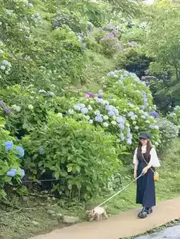 Now is the perfect time to visit! A hydrangea spot where you can bring your dog!