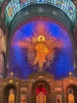 Be sure to come in the afternoon. This way, after the visit, you can see the lights at night, which are even more beautiful. And after the lights are on, the rainbow glass inside the church reflects different colors.