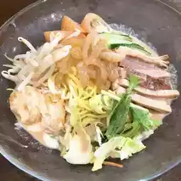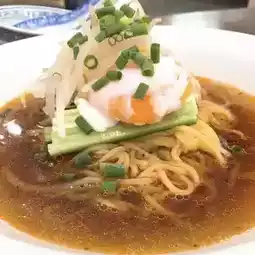 ・The cold Chinese noodles are topped with traditional Chinese jellyfish, shrimp mayonnaise, and char siu, and the mellow sesame sauce is delicious when mixed with the noodles😋