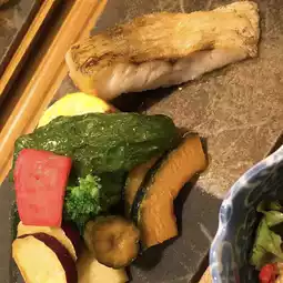 The plump fish is grilled to perfection, the flavor is just right, and the deep-fried vegetables have a nice aroma.