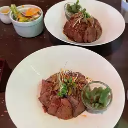 The roast beef bowl is thick, and the flavor of the lean meat spreads in your mouth.