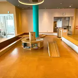 The children's play area with hand washing facilities is large, and the picture book corner has a large number of books👍