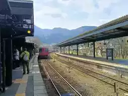 The station is surrounded by cherry blossom trees, so it is very beautiful to take pictures of the trains passing by.