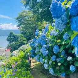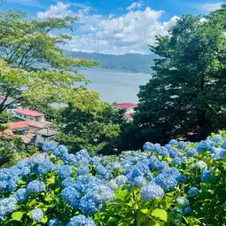Located on a hill overlooking Lake Suwa, this is a scenic spot where you can enjoy colorful hydrangeas in colors such as blue, purple, pink, and pale blue✨
