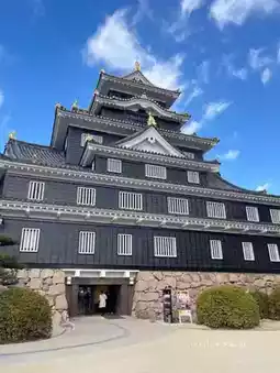 The castle has six floors, including one underground level. Inside, there's a museum that tells the story of its history, exhibits, and various activities. Climb to the top of the castle for a 360-degree view of Okayama City and a beautiful garden. Behind the castle is the Asahi River, which flows behind the castle, which was formerly used as a moat. Surrounding the castle is the Japanese garden Korakuen. Okayama Castle, one of Japan's most beautiful gardens.