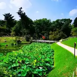 The winding waterways in the garden are sometimes gurgling streams and sometimes wide rivers. Combined with the winding paths and lush green lawns, they present a unique beauty.