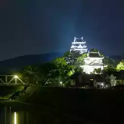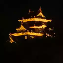 Arriving in Okayama in the afternoon, we strolled to Okayama Castle after visiting AEON. As night fell, the castle's silhouette was gracefully outlined by soft lighting, exuding understated charm in the darkness. Though there was no elaborate light show, the tranquility and sense of history became even more mysterious under the faint glow.