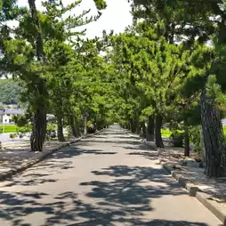 The path to the shrine passes through pine forests on both sides, and there are idyllic power spots scattered throughout.