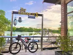 After several courses, there is a very large lake with many large koi fish. The vending machine just nearby sells fish food. The children can sit by the lake and feed the fish.
