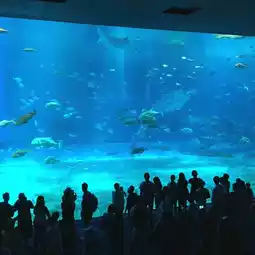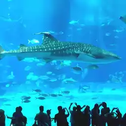 Okinawa, northern part, the main attraction, a must-visit for tourists, huge crowds of people, large aquarium, a very large transparent glass, many tourists watching different marine creatures swimming around in the pool, very spectacular, especially the manta ray, so proud, the big turtle, very interesting, no wonder it is so popular with tourists. #Overseas Travel #Island Holiday #Theme Park Guide