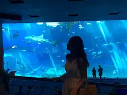 The aquarium area is very large. It takes hours to walk around. Right near the aquarium are many famous tourist areas such as Okinawa village, Emerald beach, herb garden ...., the aquarium is beautiful and the surrounding area is the largest I've ever seen.