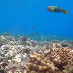 There are various ways to get there, such as regular boats, marine shop tours, or just using the marine shop's round-trip boat, but even though it's only a short boat ride away, the coral reefs are incredibly beautiful!