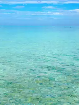 The contrast between the clear sea as far as the eye can see and the white sandy beach is so stunning it makes you think it's heaven🏝️✨