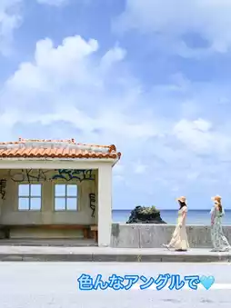 The sea is right next to it, and the blue sea spreads out before my eyes, making this a spectacular spot📷This bus stop, which stands out against the blue sky, is truly one of Okinawa's most typical landscapes🌺𓈒𓏸