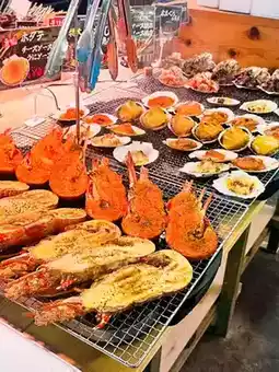The market offers a wide variety of seafood options, including fresh sashimi, plump oysters, and sweet shrimps and crabs. Not only can you buy them on the spot, but there are also many stalls that provide instant processing, so you can enjoy them immediately after buying! In addition, there are dried foods and seafood sauces unique to Okinawa, which are suitable for taking home as souvenirs.