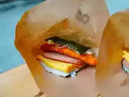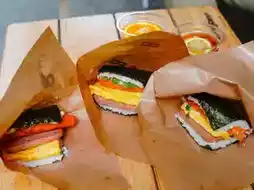 Steaming hot rice sandwiched with a golden, tender fried egg, paired with salty and crispy luncheon meat. One bite and you're filled with happiness. The outer layer is wrapped in seaweed, adding a slight sea flavor that enhances the overall taste. This simple combination is surprisingly delicious, no wonder it's a super popular breakfast in Okinawa!
