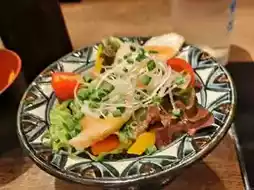 We pushed open the door and began our first meal with some gesturing to communicate. The interior decor was more refined than I expected, with colorful glass lamps hanging from the ceiling, Ryukyu-style tiles and wooden carvings on the walls, and clean tables set with ceramic bowls and condiment jars. As soon as we entered, the staff greeted us warmly with a smile.