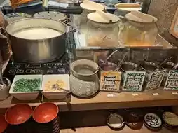 The side dishes were self-serve, with four options: seaweed, pickled radish, tofu, and an unknown salad (I skipped one of them). Although the portions were small, the variety was satisfying, and the flavors were good. There was also self-serve island tofu, which was rich in soy flavor and had a smooth texture.