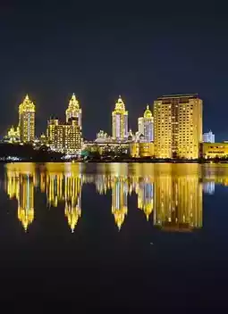 Entering the park, I almost doubted I was in Hong Kong: in front of me was a shimmering clear lake, with various splendid high-rise buildings lining the shore, resembling a Hong Kong harbor scene. I strolled along the quiet lakeside path, the breeze gentle, the lake sparkling. The magnificent buildings reflected in the water like wrinkled golden shadows floating on the surface. The modern architecture and natural beauty complemented each other, like a fairyland.