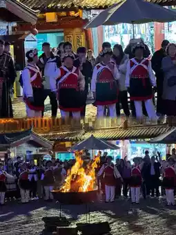 Many claim Lijiang Old Town has become overly commercialized, but as I wandered its streets, I discovered a vibrant pulse of Naxi culture still alive in every detail. Beneath the upturned eaves of ancient houses, shop signs are adorned with mysterious Dongba script,and we amused ourselves by guessing the characters with a guidebook, as if deciphering a thousand-year-old code. Suddenly, around a corner, cheerful drumbeats led us to a group of Naxi elders dancing around a torch in the traditional circle, their sheepskin coats swirling in the firelight—soon even bystanders were tapping their feet to the rhythm. The air was forever sweet with the scent of freshly baked flower pastries and from famed shops like Mulaoye to hidden alleyway bakeries, each had its own floral blend of rose, jasmine... One bite through the flaky crust felt like swallowing a mouthful of Yunnan’s spring.