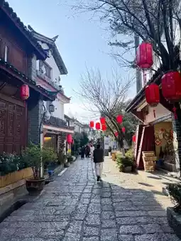 This ancient city, a World Heritage Site, is over 800 years old and nestled amidst a valley. The streets are lined with ancient wooden houses, paved with cobblestones, and are connected to a canal flowing from the Jade Dragon Snow Mountain. The atmosphere feels like you've stepped into a period drama from a Chinese TV series. Walking around, admiring the culture and architecture here is truly beautiful. This city is a charming place, with its unique lifestyle, local attractions, and food. There are also shops that rent traditional costumes for photo opportunities. You'll often see people wearing traditional costumes taking photos along the old town. We've been to Lijiang twice and are still impressed.