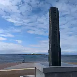 As you drive along the coastline, you will suddenly come across a monument and something like a small observation deck.