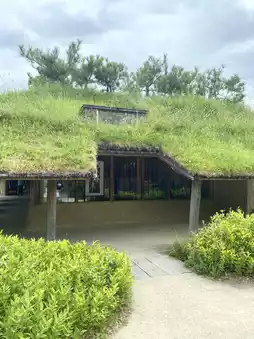 The parking lot is spacious, and the view from the slope leading into the building is like being lost in a moss-covered Ghibli world. It's a mysterious feeling that gets you excited!