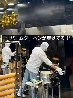 The first part of the building is divided into two sections: Club Harie's Baumkuchen on the right and Taneya's Japanese sweets booth on the left.