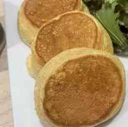 They're carefully baked to order, so you can enjoy the softness and bubbly, melt-in-your-mouth texture that only freshly baked pancakes can offer!