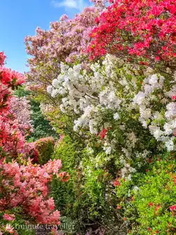 Photo 2 shows the azalea hill near the entrance, which is impressive enough in itself, but the further you go, the more impressive the wall of azaleas becomes, as seen in photos 3 and 4.