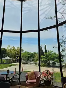 A great atmosphere that you can't miss, surrounded by green trees. There are both drinks and sweet and savory dishes for you to try.