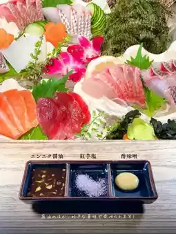 🙋♀️ The fish dish was so impressive! 😂 This time, I tried the restaurant's recommended fish dish, and the sashimi platter was simply huge!! lol The fresh sashimi was served on a huge plate, and when I first saw it, I couldn't help but exclaim, "Huh?!" 😂 The fish was plump and delicious! 💓 Normally, you'd eat it with soy sauce, but at Toto Chanpuru, you can also eat it with garlic soy sauce, purple sweet potato salt, or vinegared miso! These flavors surprisingly go well together! ☺️